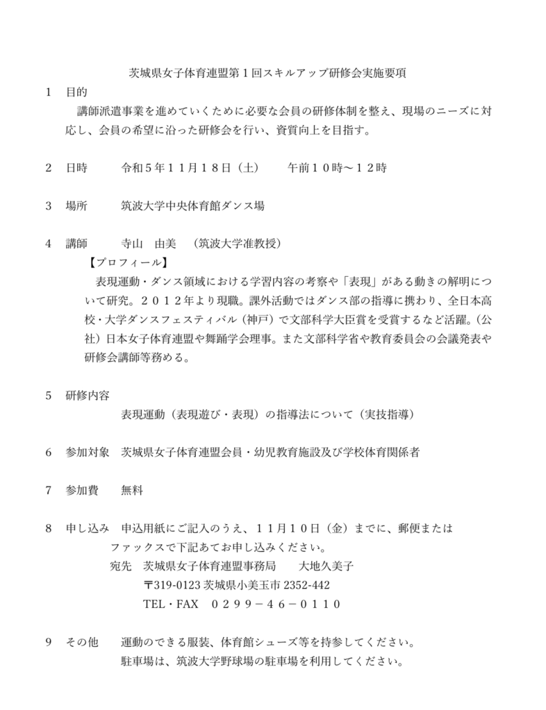 今年も講師には筑波大学の寺山由美准教授をお願いし、「表現遊び・表現運動・ダンスの指導―子どもたちから動きを引き出す手立て」という内容で研修会を行いました。